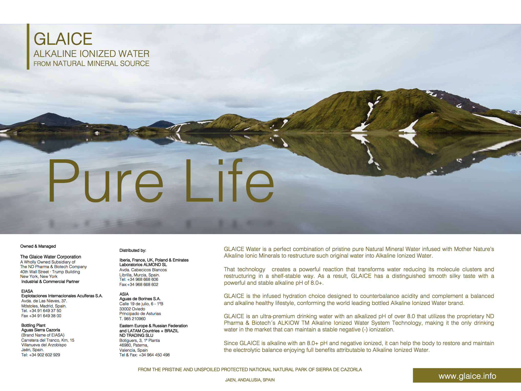 GLAICE (Alkaline Ionized Water) is a brand of our company, ND Pharma & Biotech Company. From early years we ́ve conducting extensive research on (WTT) Water Transformation Technology in absolute conscience of the importance of an alkaline lifestyle and the benefits of alkaline ionized water, so we set out to research this new category of water products.